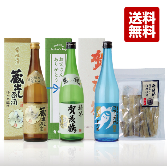 これからの季節にぴったりの冷酒と賀茂鶴メンバーズ限定商品が入った詰め合わせ。