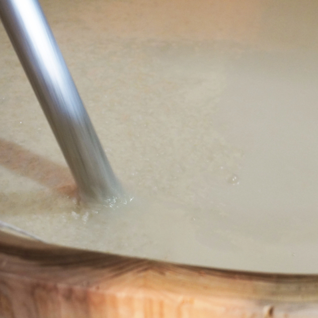 杜氏が組み上げた木桶を使い、伝統的製法・生もとで仕込む「木桶生もと」。